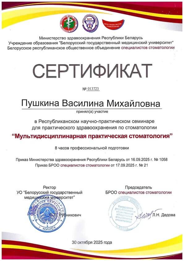 Василина Михайловна в 2014 году окончила стоматологический факультет Белорусского государственного медицинского университета.